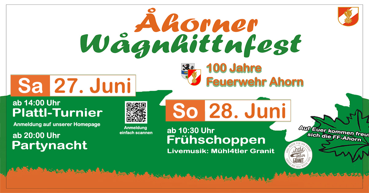 Ab 10:00 Uhr feiern wir gemeinsam mit einem feierlichen Festakt das 100-jährige Bestehen der FF Ahorn.